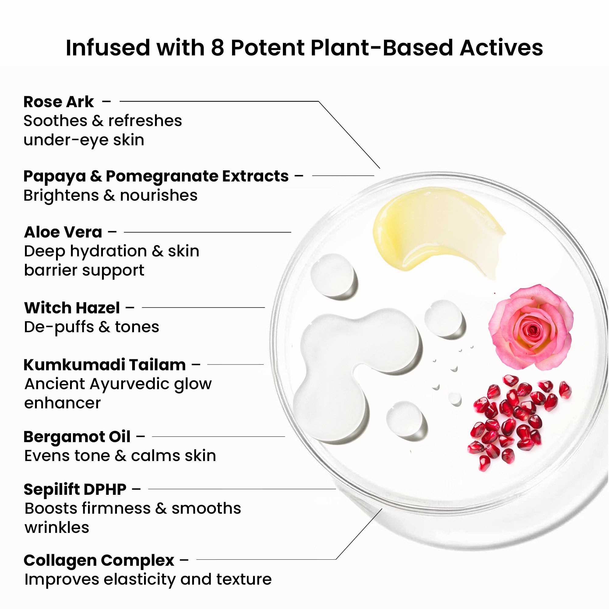 Nourishes, hydrates, reduces dark circles and fine lines, improves texture, and enhances skin tone around the eyes.