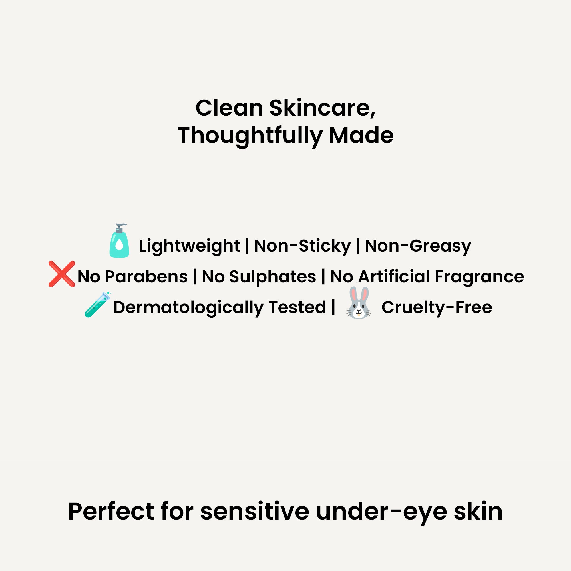 I bought this eye gel after using Wild Oak's Kumkumadi Oil. Trust me this works powerfully for tired under eye area. Soothing sensation stays for long duration.