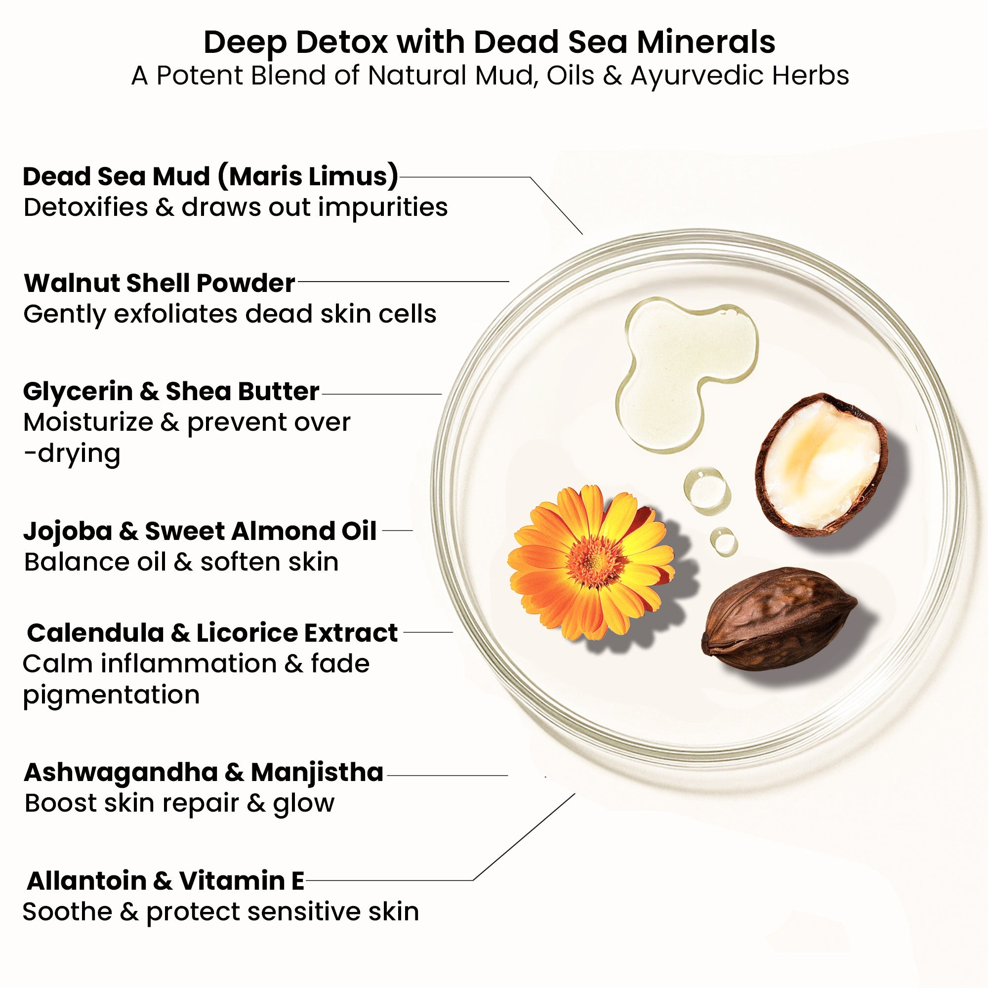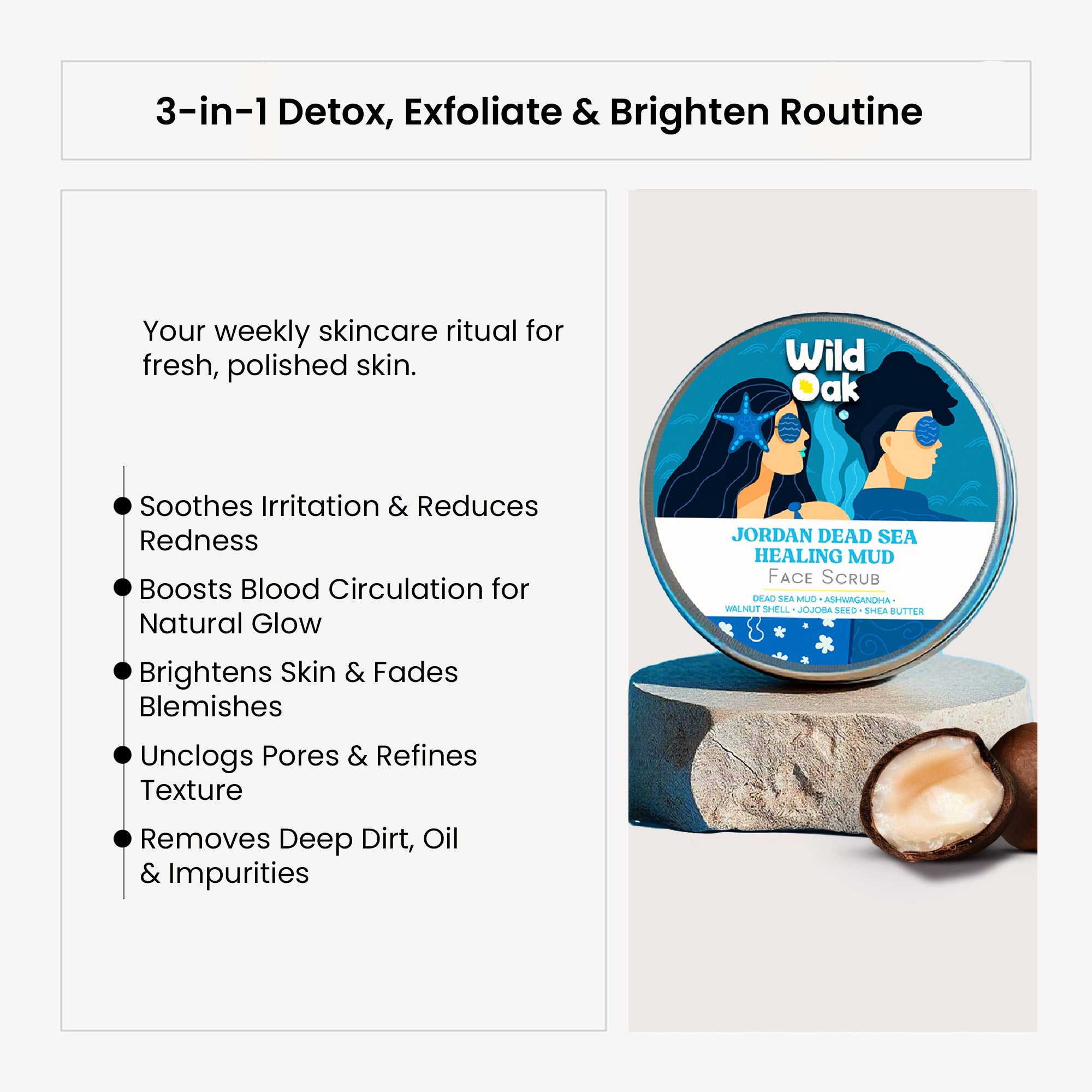 Refresh your skin with our mineral-rich <b>Dead Sea Healing Mud Face Scrub!</b> This gentle exfoliator detoxifies and buffs away impurities for a <b>smooth, radiant glow</b>. Say goodbye to dull skin and enjoy spa-quality results at home! ✨🌊